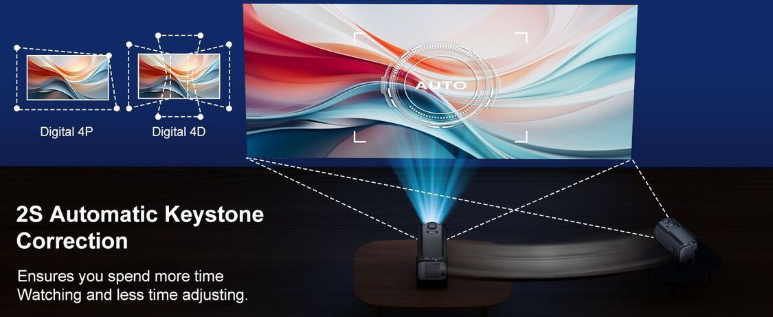 提供垂直自動梯形校正和手動四點梯形校正。結合這些功能,您將獲得更好的觀看體驗和更高的影像品質。手動對焦調整很簡單,只需輕輕滑動齒輪影像即可獲得清晰度。