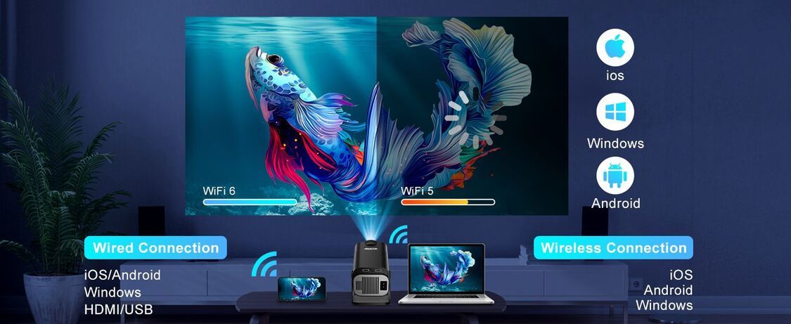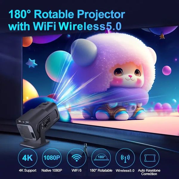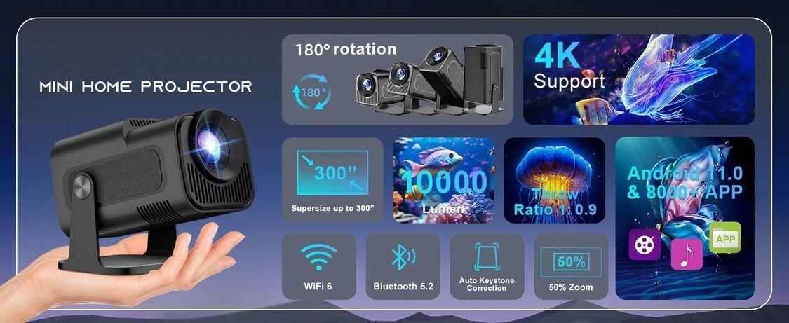 全城熱賣-HY320迷你便攜式4K投影機 Android 11 支援WiFi 6和BT5.0 自動梯形校正 150吋顯示短焦投影儀 投影機