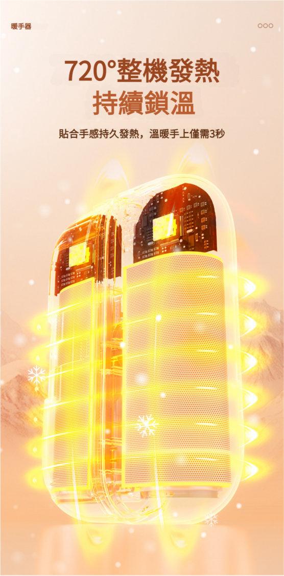 1.充電說明:開啟暖手寶充電,自動關機;暖手寶充電狀態,0~30%第1個藍燈閃爍,31%6-60%第2個藍燈閃爍,61%~100%第3個藍燈常亮