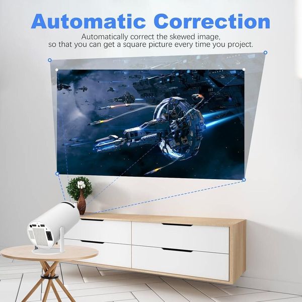 自動梯形校正:HY300迷你投影機採用手動對焦和自動梯形校正技術,內建高精度感測器,偵測即時移動,對焦更快更準。 請在投影機啟動後使用手動對焦。 自動梯形校正可以自動上下校正影像,左右無法調整。