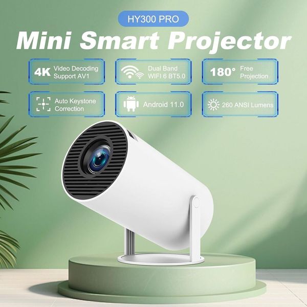 全城熱賣-HY300 PRO 迷你便攜式投影儀,4K/260 ANSI 智慧投影儀,Android 11.0 作業系統,2.4/5G WiFi、螢幕調節、180 度旋轉 附遙控器