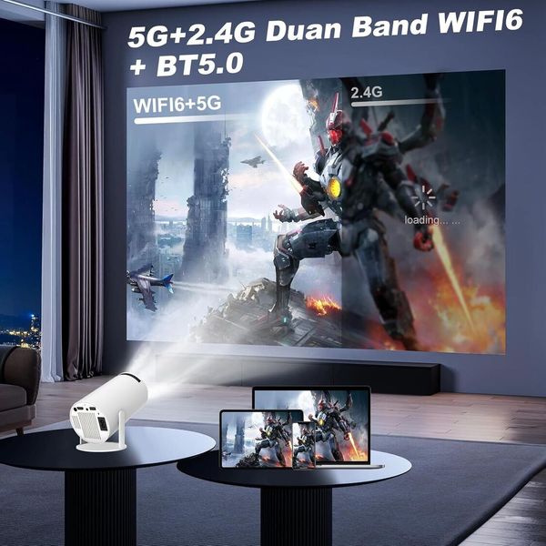 HY300 投影機的主要特點:5G + 2.4G WiFi BT 5.0 支援 4K 130 吋螢幕 自動梯形校正 180° 旋轉 3W 高保真揚聲器 便攜式尺寸 50-100% 變焦