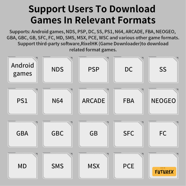 ✅ **支援遊戲**:安卓遊戲、NDS、PSP、DC、SS、PS1、N64、ARCADE、FBA、NEOGEO、GBA、GBC、GB、SFC、FC、MD、SMS、MSX、PCE、WSC等