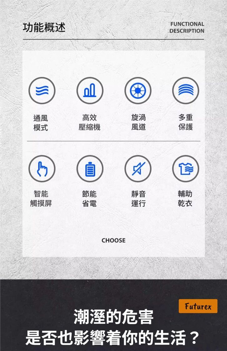 - 3種除濕模式:晴天模式、雨天模式、通風模式,照顧唔同需要