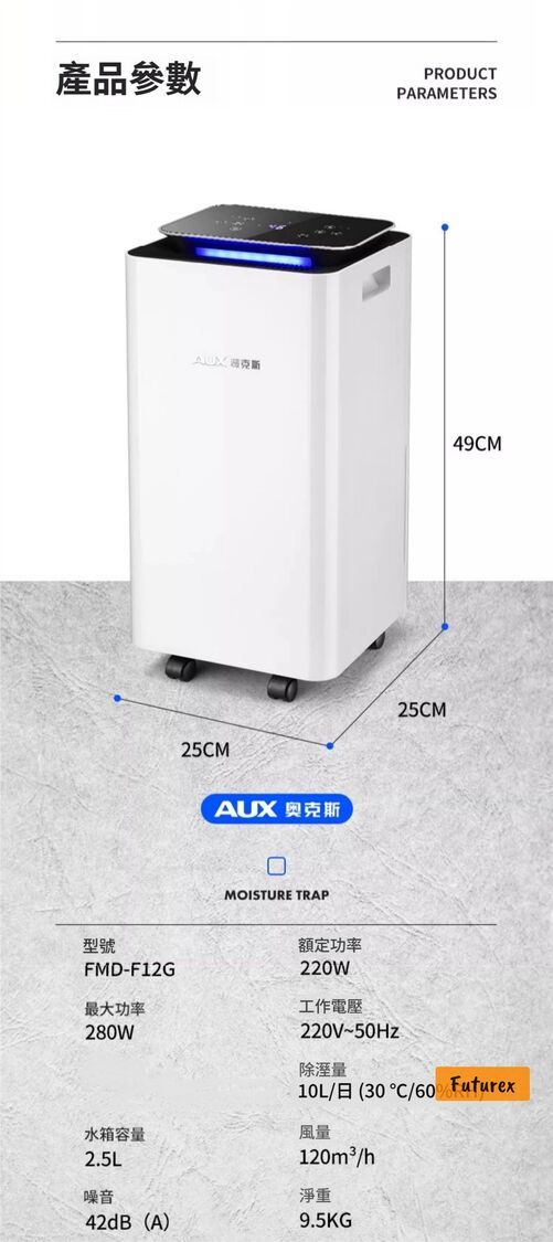 奧克斯-10公升智能抽濕機|雙核鈦金|智能觸屏|2.5 公升大水箱|3種模式除濕 KDY10-01W