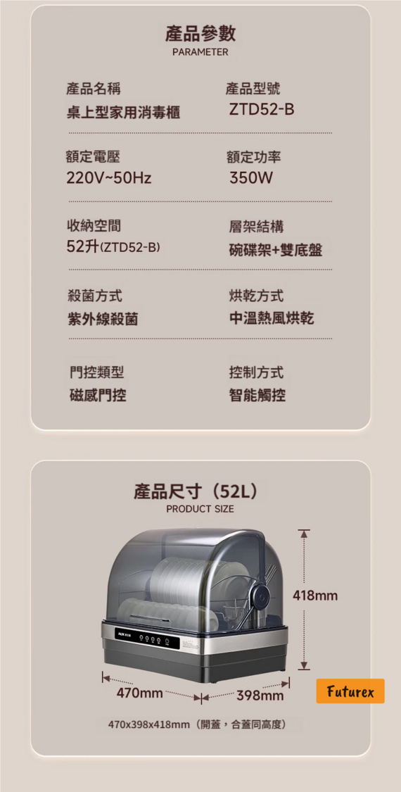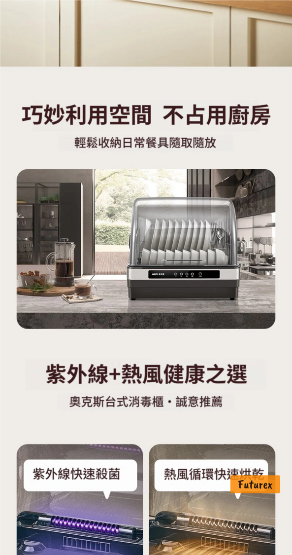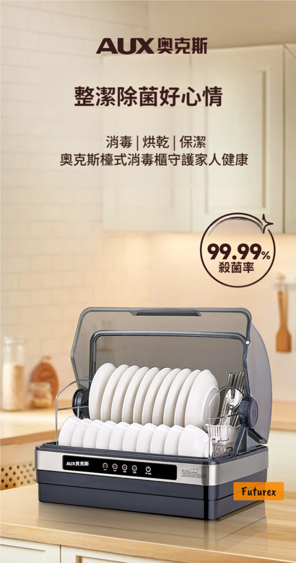 奧克斯-52公升多功消毒乾碗機|99.99%殺菌率|熱風烘乾+紫外線殺菌|消毒碗櫃|烘乾機 ZTD52-B