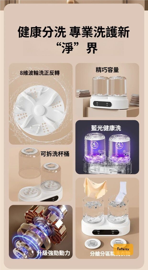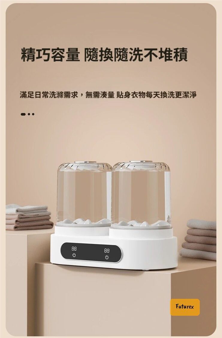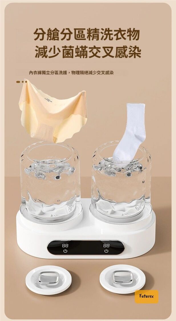 - 雙杯獨立分區設計,物理隔絕不同衣物,避免交叉感染