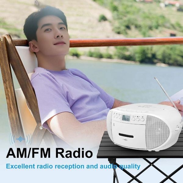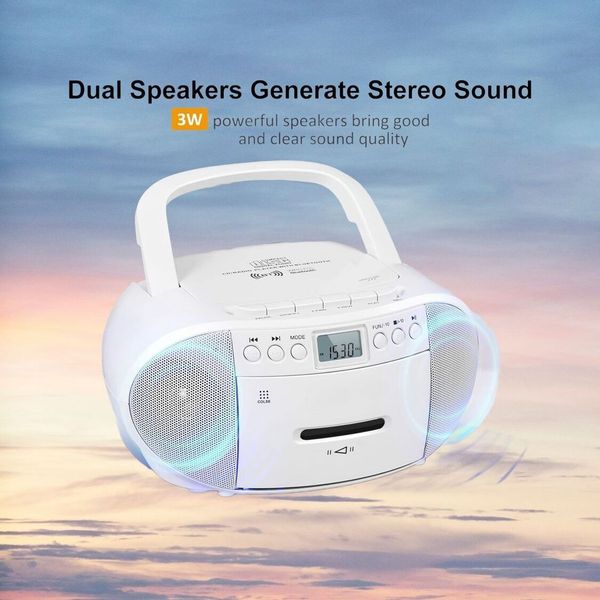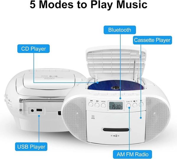 全城熱賣-便攜式 CD 和卡式錄音帶播放器 Boombox 組合、帶遙控器的卡式錄音帶錄音機、AM FM 收音機、帶耳機插孔的 USB 播放器、藍牙揚聲器、電池供電或交流電源,適合家用