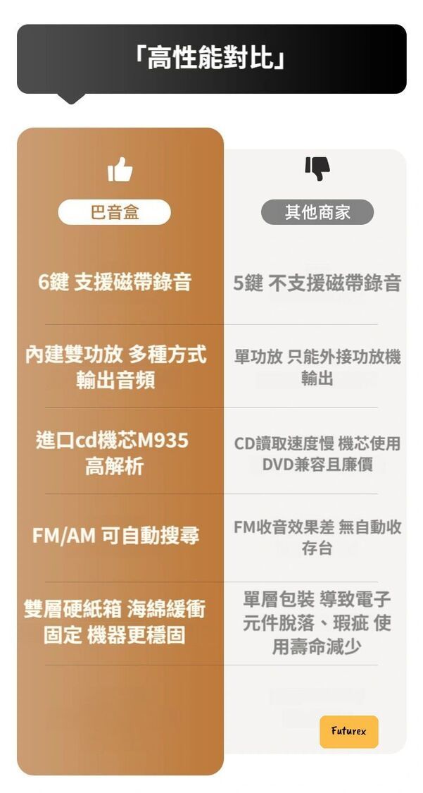 - 進口CD機芯M935,讀取速度快,支援DVD兼容
