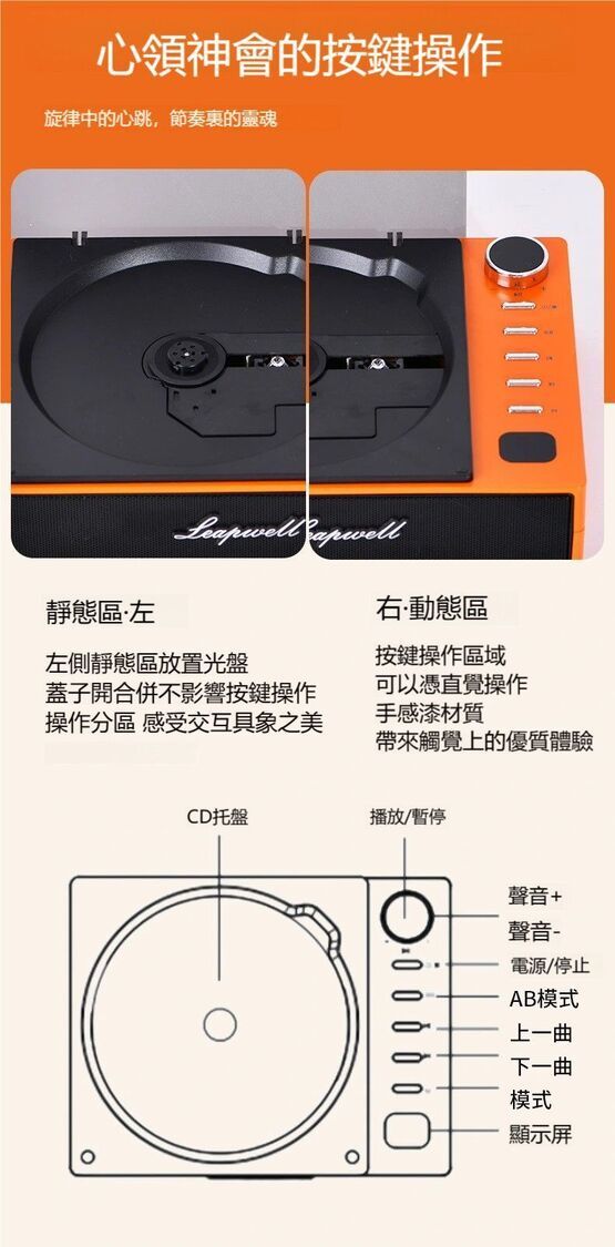 全城熱賣-復古充電便攜藍牙CD機, 藍牙音響, 數位顯示器, 專輯播放機, 附螢幕 BYH-201