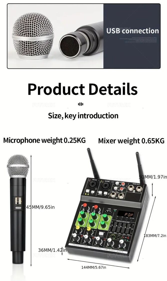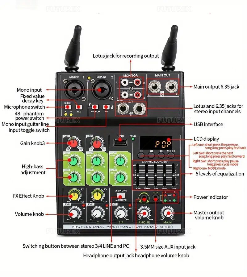 日本暢銷-4路混音器擴音機 Amplifier | 無線麥克風 | 藍牙USB均衡DSP混響 | 音效卡