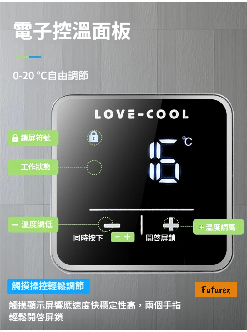 - 智能溫控0-20°C,精準度±2°C