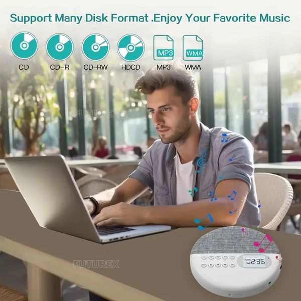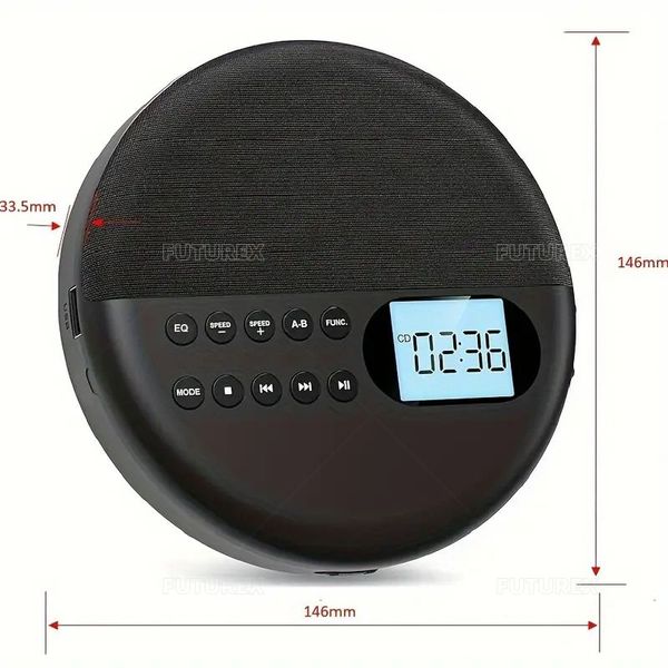 日本暢銷-充電便攜式CD播放器,藍牙雙立體聲揚聲器,可調式播放速度,A-B循環,記憶功能