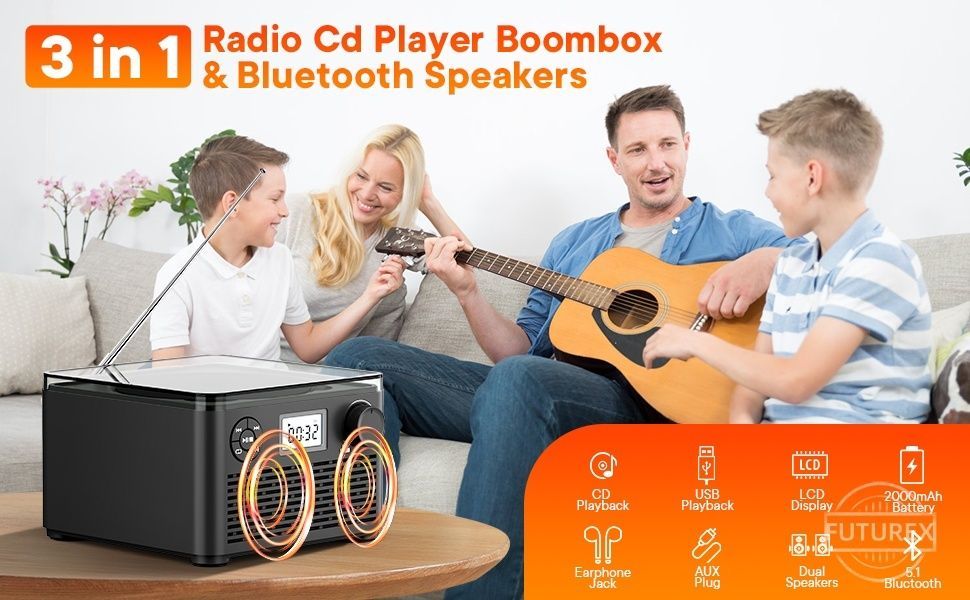 由於呢個帶有 CD 播放器嘅 boombox 係可充電嘅,唔係由交流電供電,所以可以係理想嘅幼兒 CD 播放器或者兒童 CD 播放器。