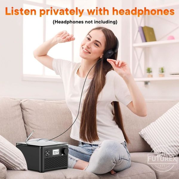 3.5mm 耳機插孔可以畀你將你嘅耳機連接去呢個便攜式嘅 boombox CD 播放器,隨時享受更個人化嘅聆聽體驗(唔包括耳機)。
