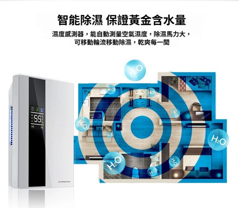全城熱賣-智慧型家用抽濕機 除濕乾衣機 小型除濕 防潮抽濕機 吸濕器 自动恒湿 自动除霜 2.2L水箱 可连接排水管 香港三腳插头