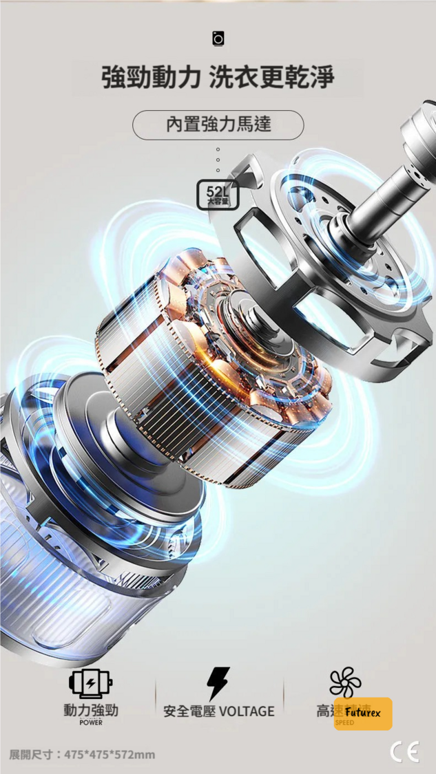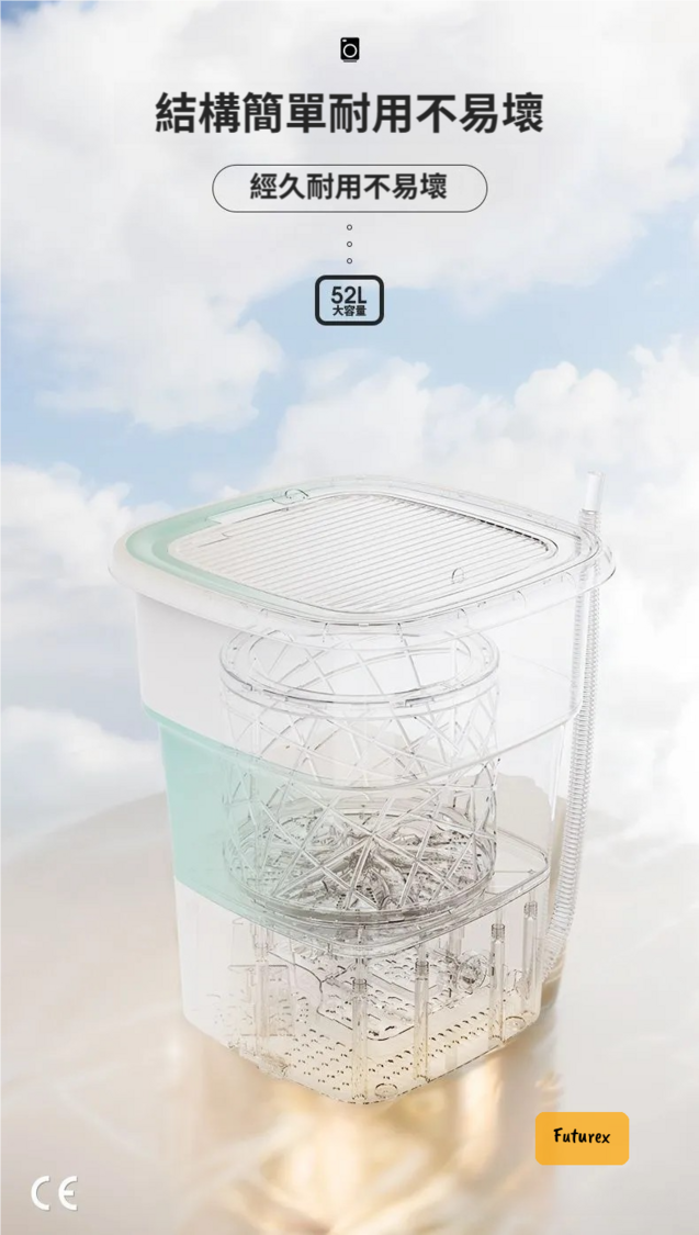 - 52L大容量,洗衫、洗鞋甚至被單都冇問題