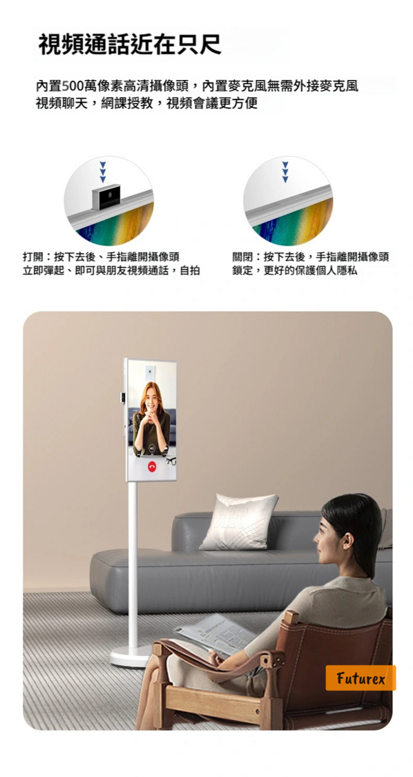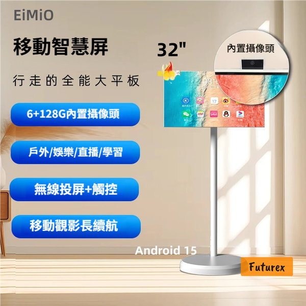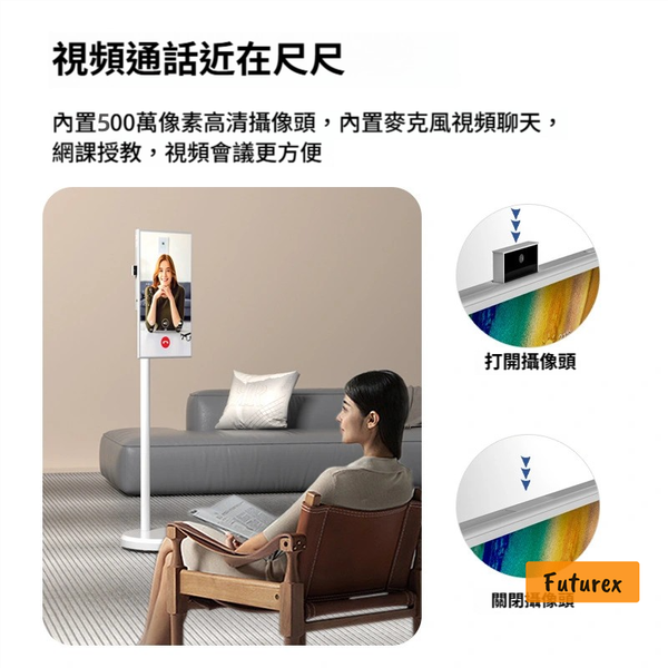 - 32吋移動智慧屏,內置500萬像素高清鏡頭同麥克風,視頻通話、網課、會議更方便。