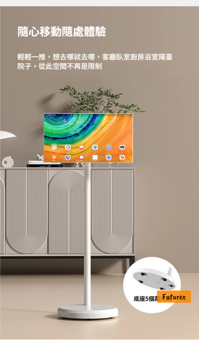 - 底座有5個萬向輪,輕輕一推就去到客廳、臥室、廚房、浴室、陽臺,空間無限制。