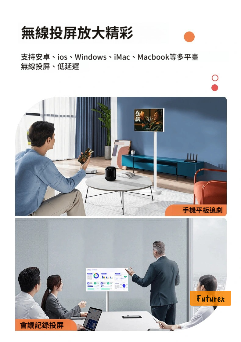 - 支持安卓、iOS、Windows、iMac、MacBook無線投屏,低延遲,追劇、打機、開會都唔怕lag。