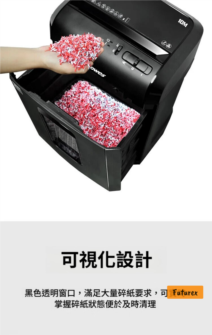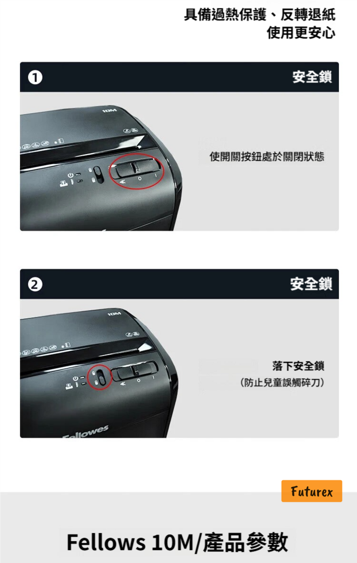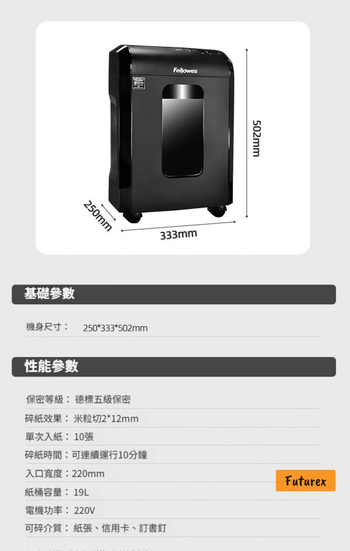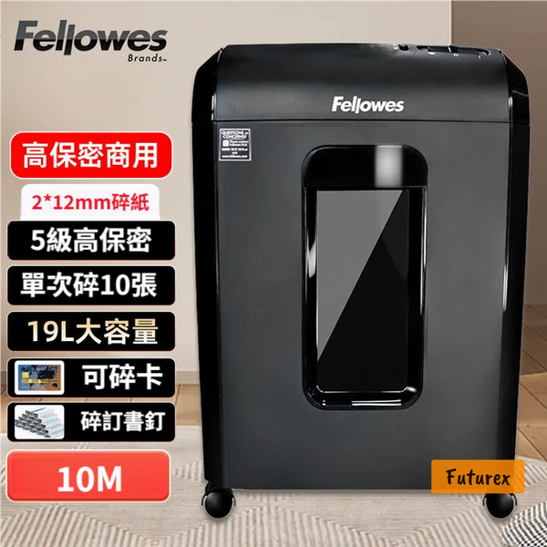 Fellowes-10M 商用粒狀碎紙機|5級保密|單次碎10張|19L大容量|過熱保護|商用辦公首選 - 平行進口