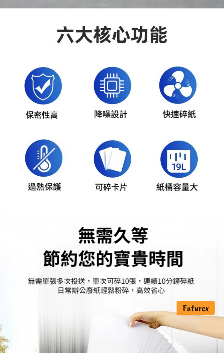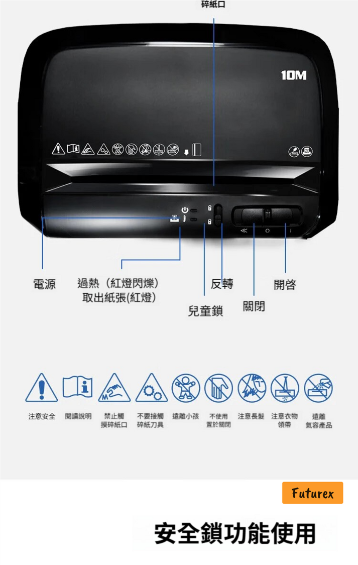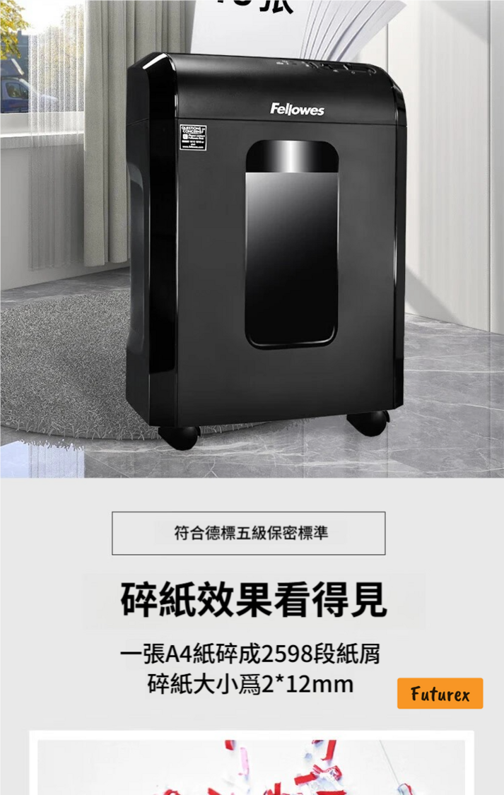 - 德標5級保密標準:將文件碎成2x12mm米粒狀,無法復原