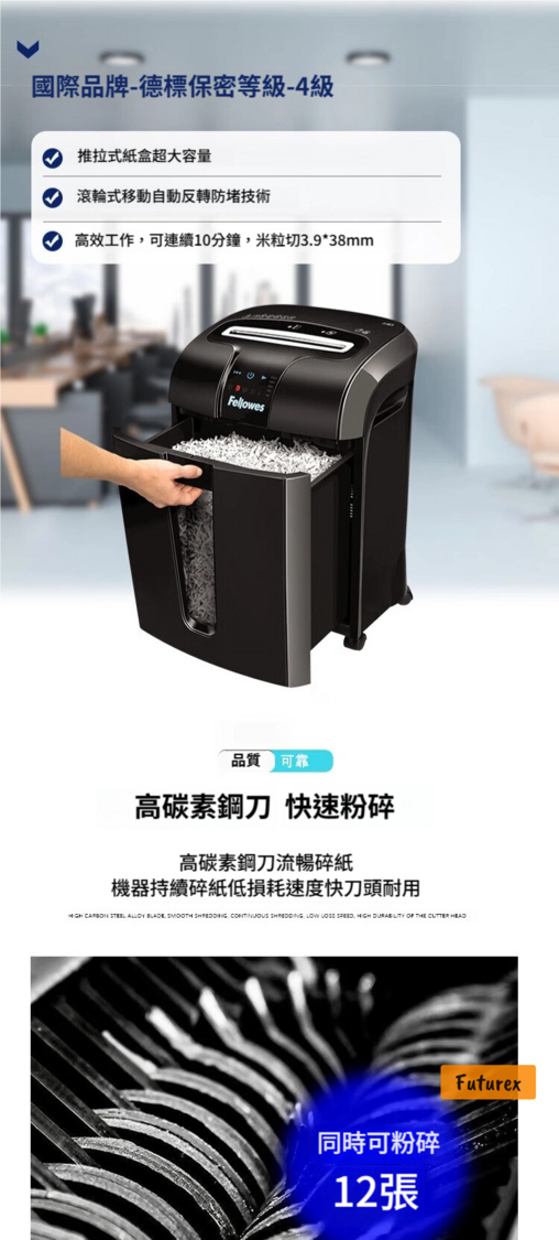 - 12張同時碎紙:高效處理大量文件,節省辦公時間