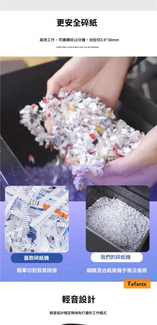 - 4級保密:德標4級保密標準,3.9*38mm碎紙效果,碎紙幾乎無法復原,保障商業機密