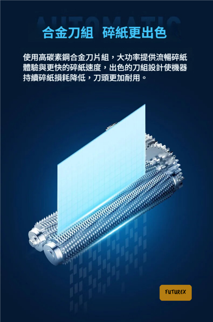 - 高碳素鋼合金刀組:耐用切割性能,碎紙速度更快