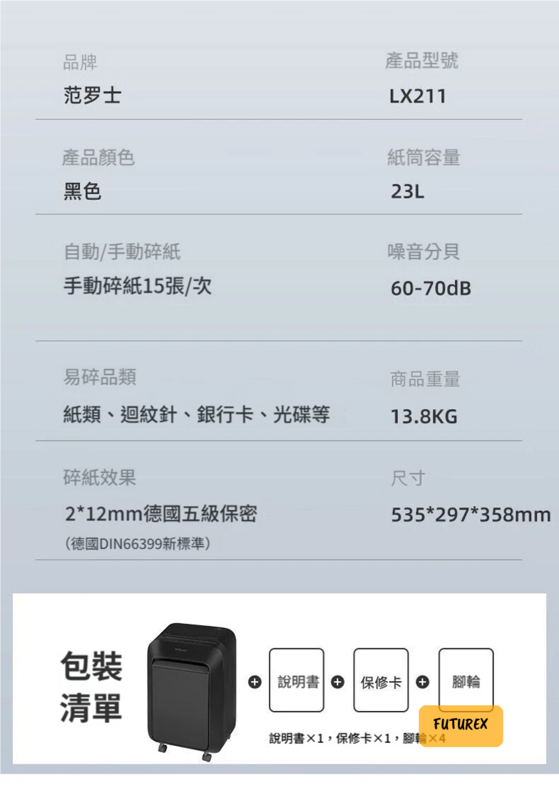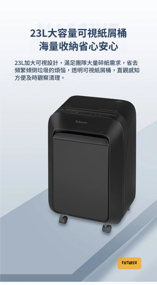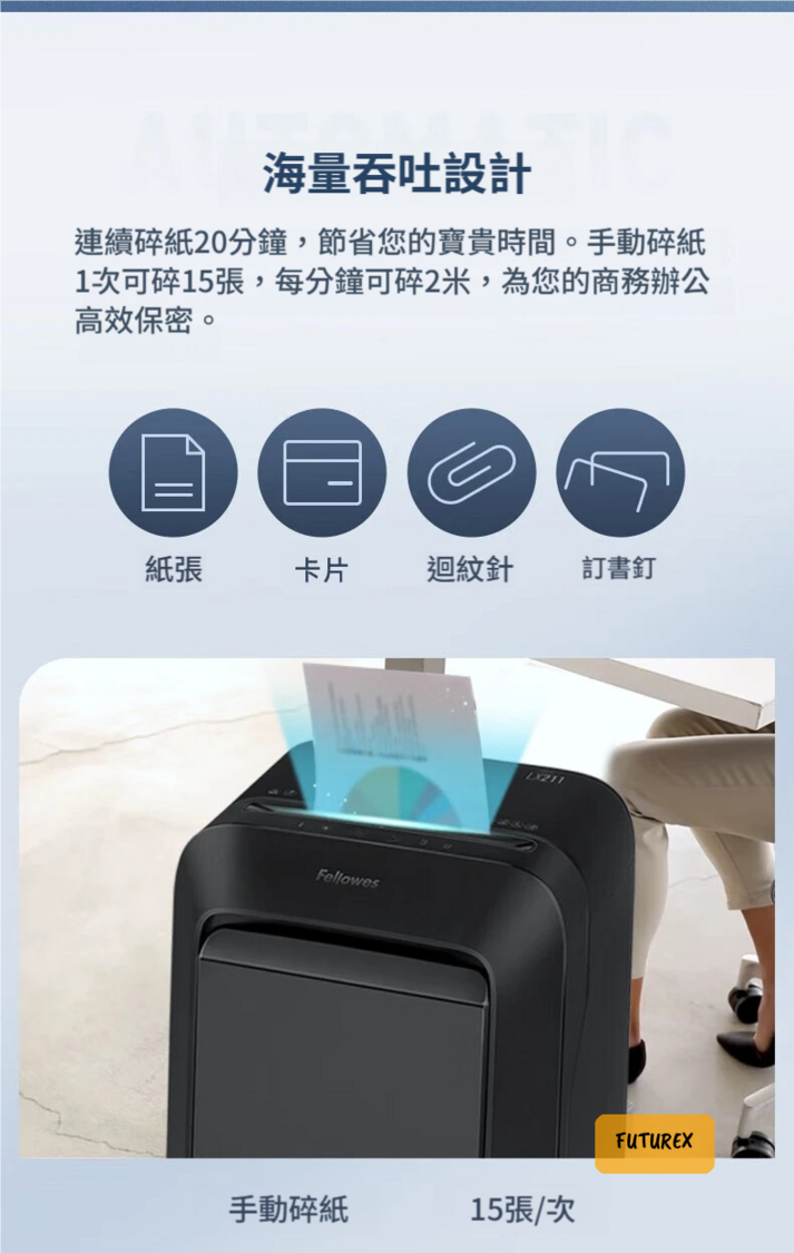 - 碎紙能力:手動碎紙15張/次