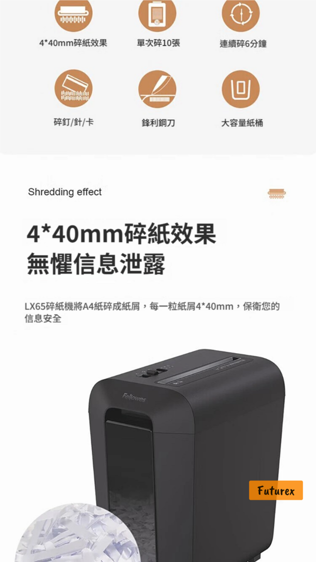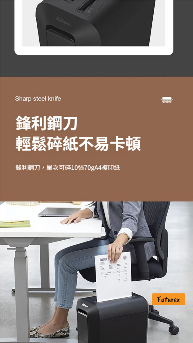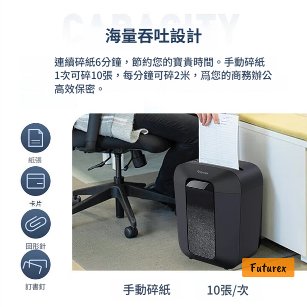- 高效碎紙能力:單次可碎10張70g A4紙,連續運作6分鐘,辦公效率大大提升