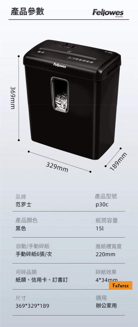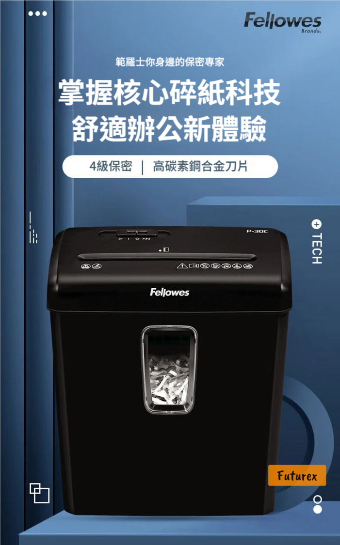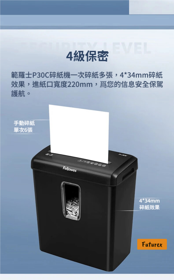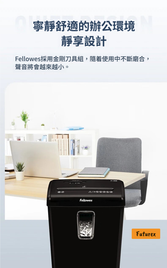Fellowes-P30C 桌邊輕型商用電動碎紙機|4級保密|15L大容量|靜音設計 - 平行進口