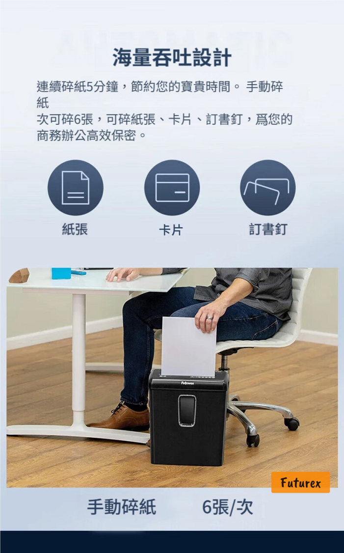 • 碎紙容量:6張紙/信用卡/訂書釘