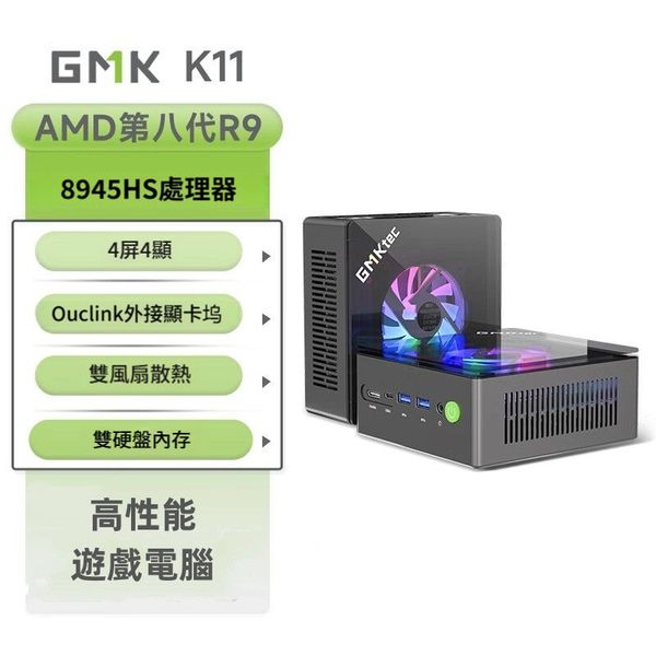 GMKtec-K11 迷你遊戲電腦, 16G + 512G, Ryzen R9-8945HS, Oculink外介面暢玩3A遊戲, 四螢幕顯示輸出Mini PC, WiFi6 + BT5.2