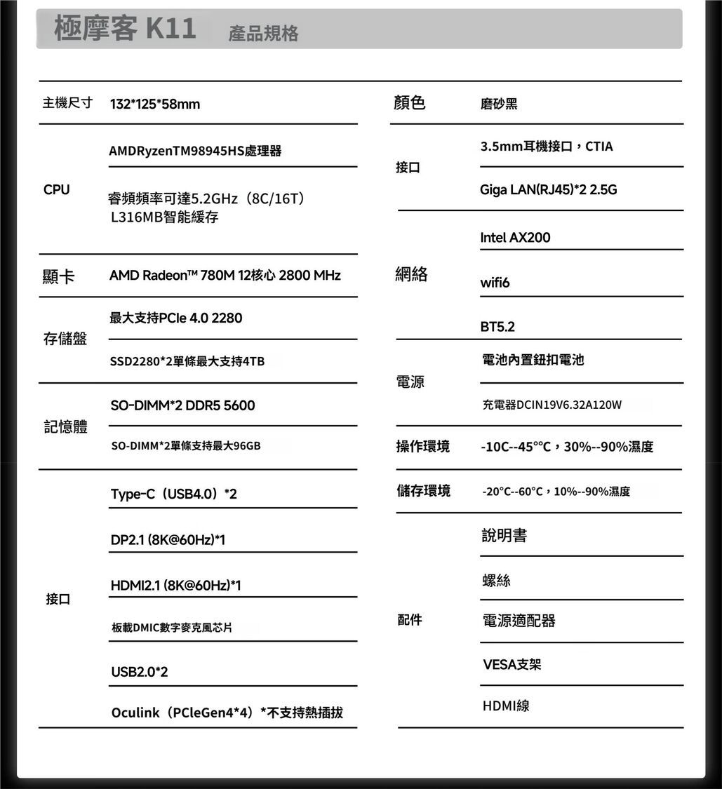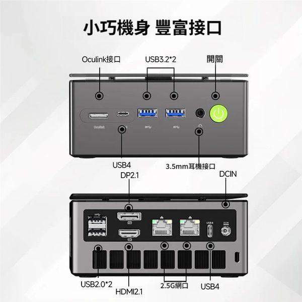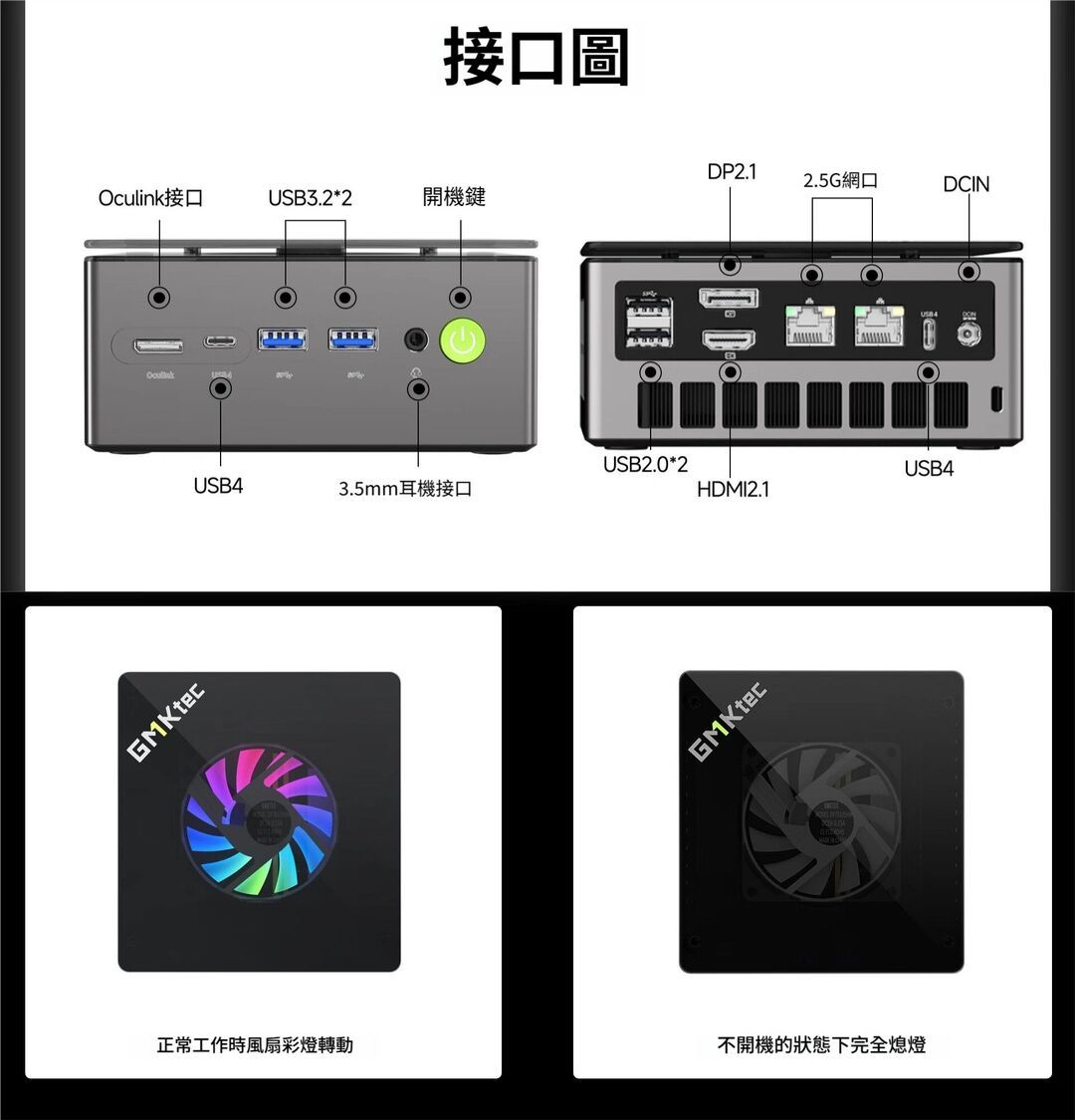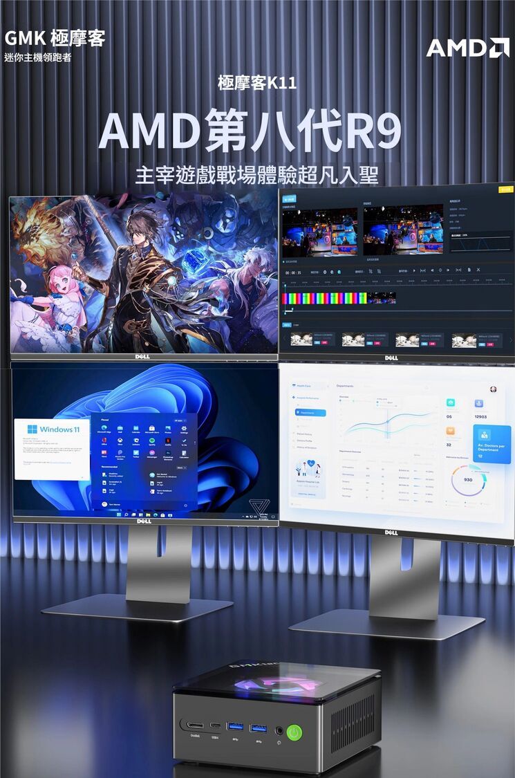 GMKtec-K11 迷你遊戲電腦, 32G + 1T, Ryzen R9-8945HS, Oculink外介面暢玩3A遊戲, 四螢幕顯示輸出Mini PC, WiFi6 + BT5.2