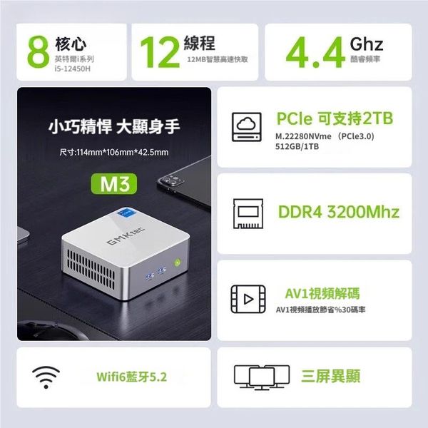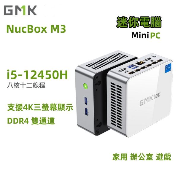 GMKtec-M3 迷你電腦, 16G + 1T, Intel i5-12450H, Windows 11 Pro 4K三螢幕顯示輸出Mini PC, WiFi6 + BT5.2