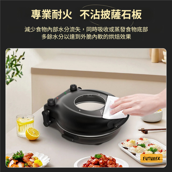 - 專業耐火不沾披薩石板:減少食物內部水分流失,同時吸收或蒸發底部多餘水分,達到外脆內軟嘅烘焙效果。餐後一抹即淨,清潔超輕鬆。