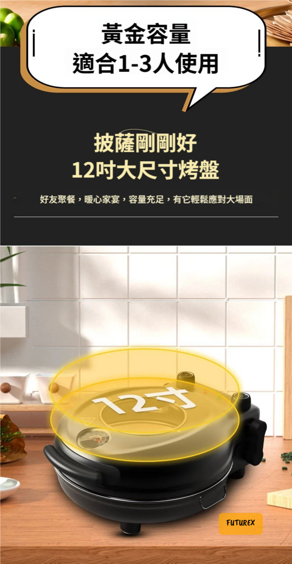 - 披薩容量:最大12吋(適合1-3人使用)