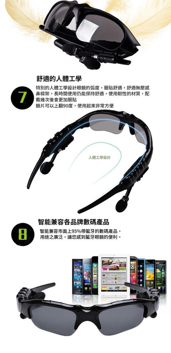 藍牙眼鏡聽歌通話立體聲太陽眼鏡,真係一款集時尚、實用、高科技於一身噅智能產品。獨特嘅無導線設計,結合咗先進嘅數位引擎技術,讓到呢眼鏡嗆音效高保真,立體感十足,讓您喺享受音樂嗆同時,亦不需擔心線嗆纏繞同埋幹擾。