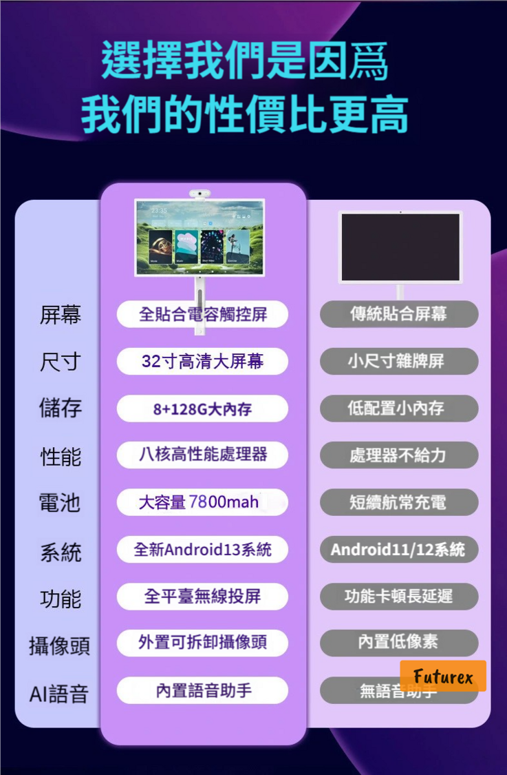 - Android 13系統,8GB RAM + 128GB儲存,運行流暢不卡頓