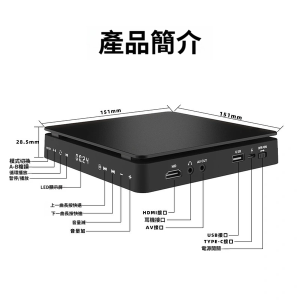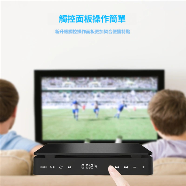 迷你機身僅2.56吋厚,簡約設計擺廳房都啱feel!附遙控器躺梳化控制超方便,送Type-C線供USB供電。長輩播粵曲CD、細路睇教育VCD、後生播K歌MP3,全家啱用!