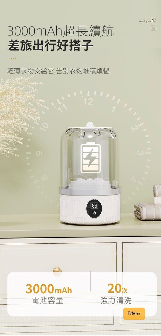 - 3000mAh電量:一次充電可以洗多次,續航力強。