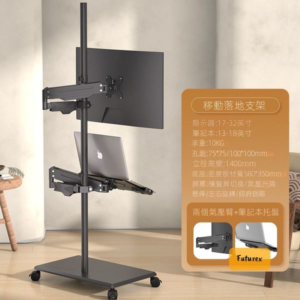 日本暢銷-17-32吋顯示器移動落地支架|氣壓升降|橫豎屏切換|附鍵盤托