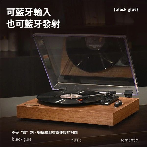 全城熱賣-黑膠碟機 | 藍牙復古木質黑膠唱盤機, 桌上型留聲機 藍牙喇叭, 支援33 45 78 rpm