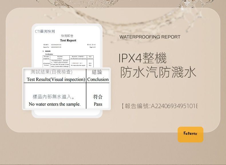 - IPX4防水等級,浴室都用得