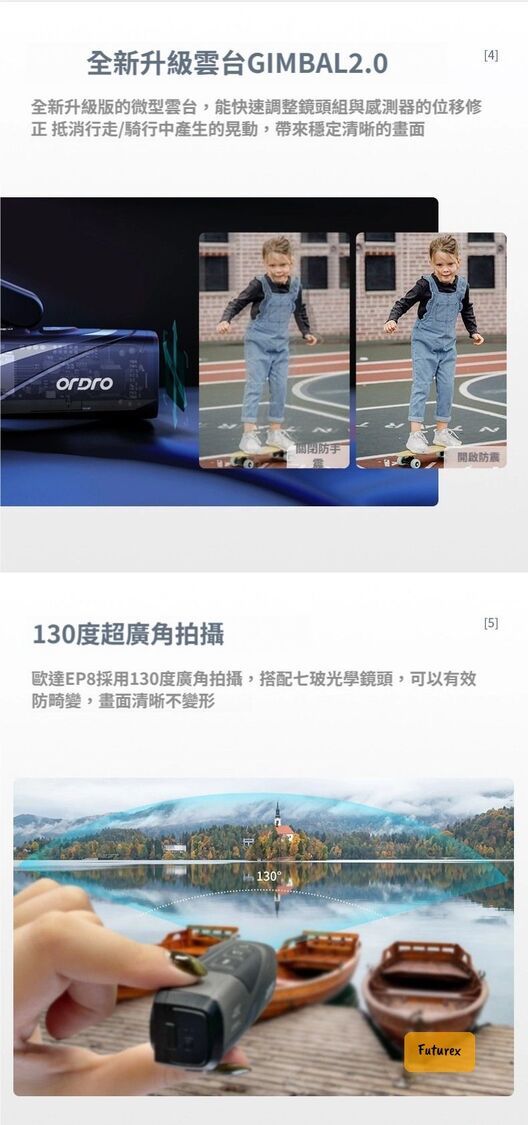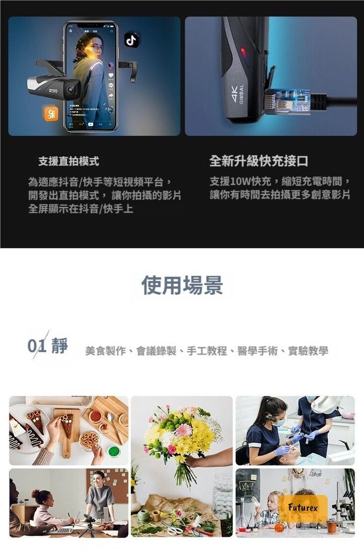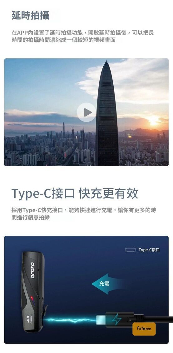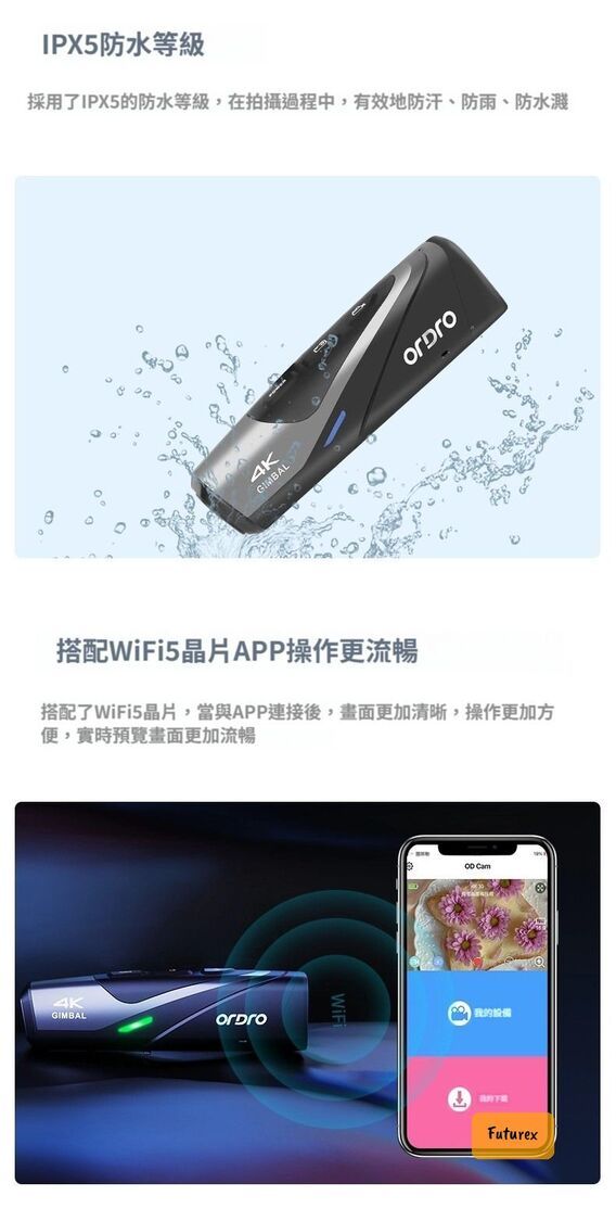 - 雲台2.0防震技術,行路、踩單車都唔會震,畫面穩定流暢