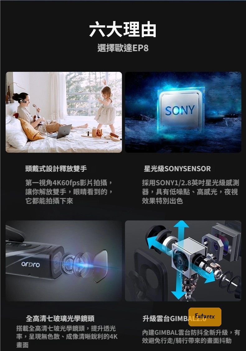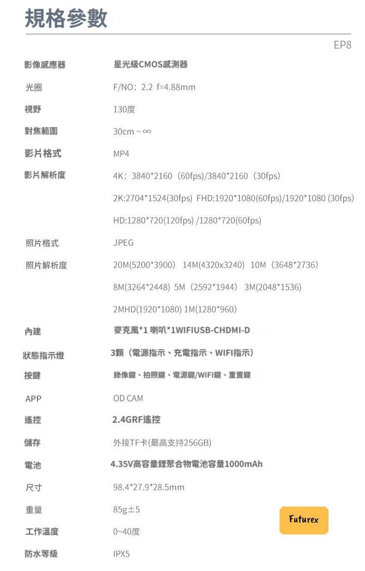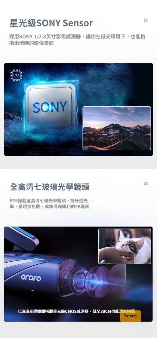 - 4K 60fps超清拍攝,採用Sony 1/2.8吋星光級感測器,夜拍都清晰