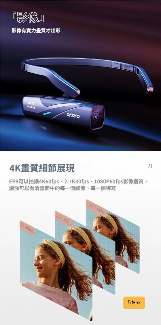 - 影片解析度:4K 60fps/30fps、2.7K 30fps、1080P 60fps/30fps