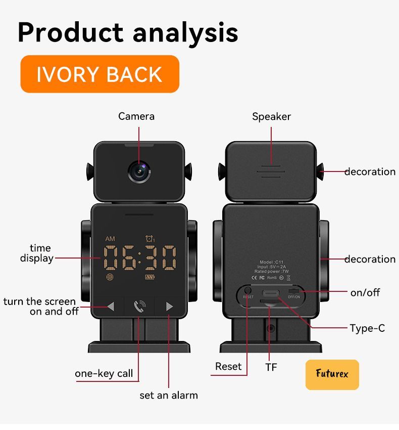 日本暢銷-C11智能時鐘攝像頭|300W高清|移動偵測|雙向通話