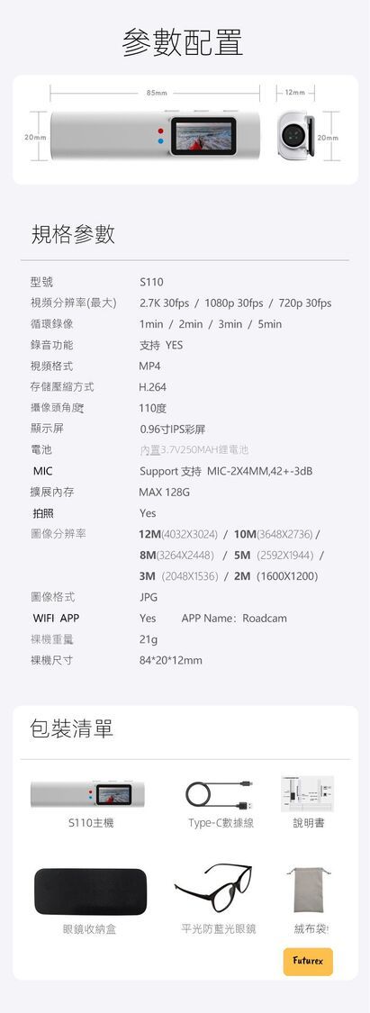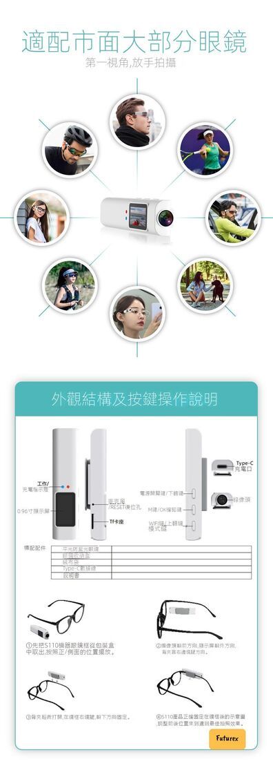 日本暢銷-S110第一視角眼鏡相機|2.7K錄製|1小時續航|解放雙手